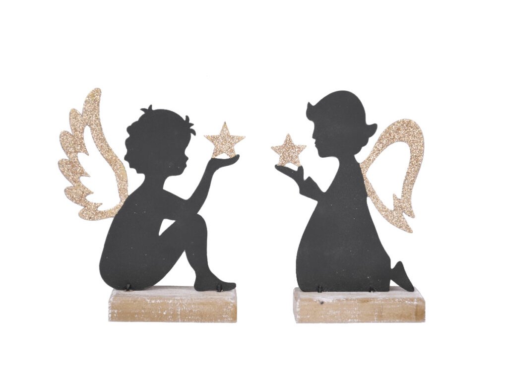 Anděl kluk/holka na podstavci, černá/zlatá, 12x14,|Ego dekor