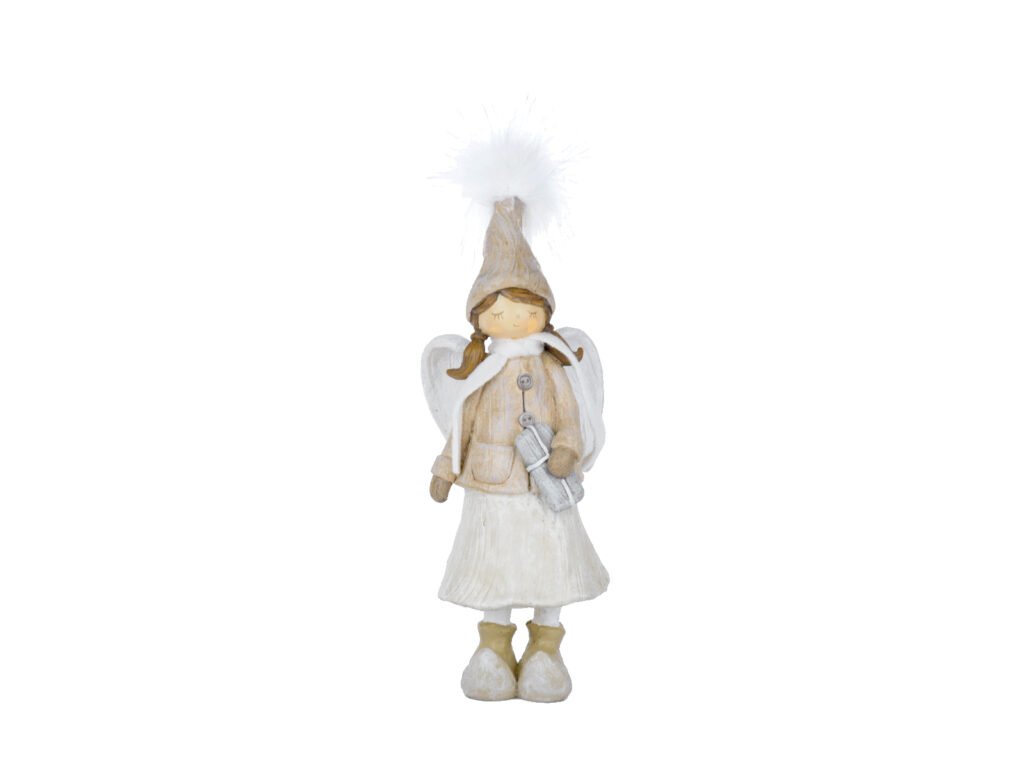 Anděl s kabátkem, s dárkem, 25cm, béžová|Ego dekor