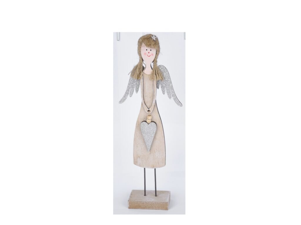 Anděl se srdíčkem na podstavci, přírodní, 10,5x30,|Ego dekor
