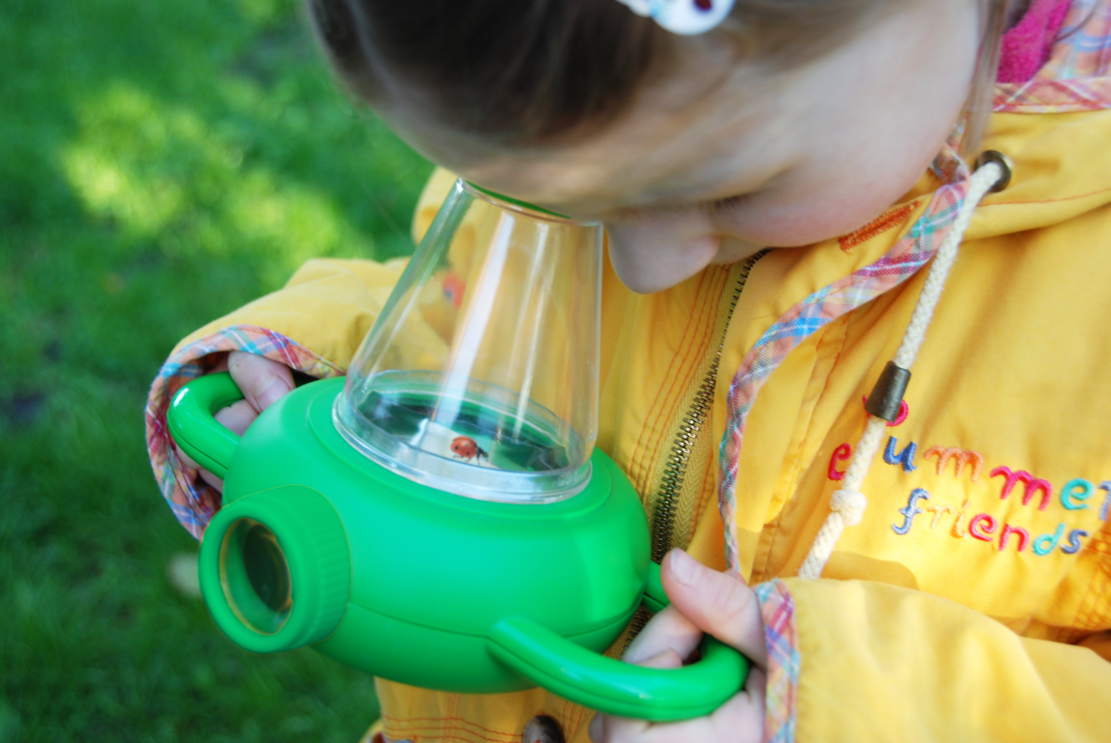 - V horní části víka je integrovaná lupa, která pomáhá dětem vidět detaily, jež jsou pouhým okem přehlédnutelné – ať už se jedná o nožičky mravence, kresbu na mušli nebo strukturu listu.