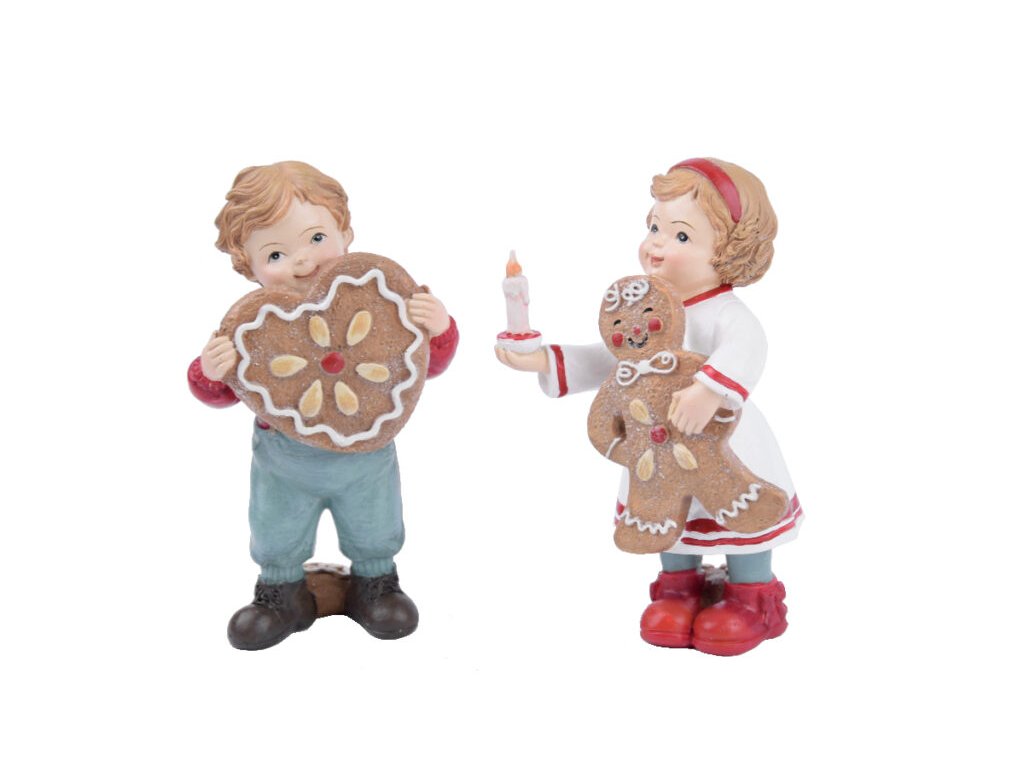Chlapec/dívka GINGERBREAD, hnědá/bílá/červ./zel, cca.9x14x5cm|Ego dekor