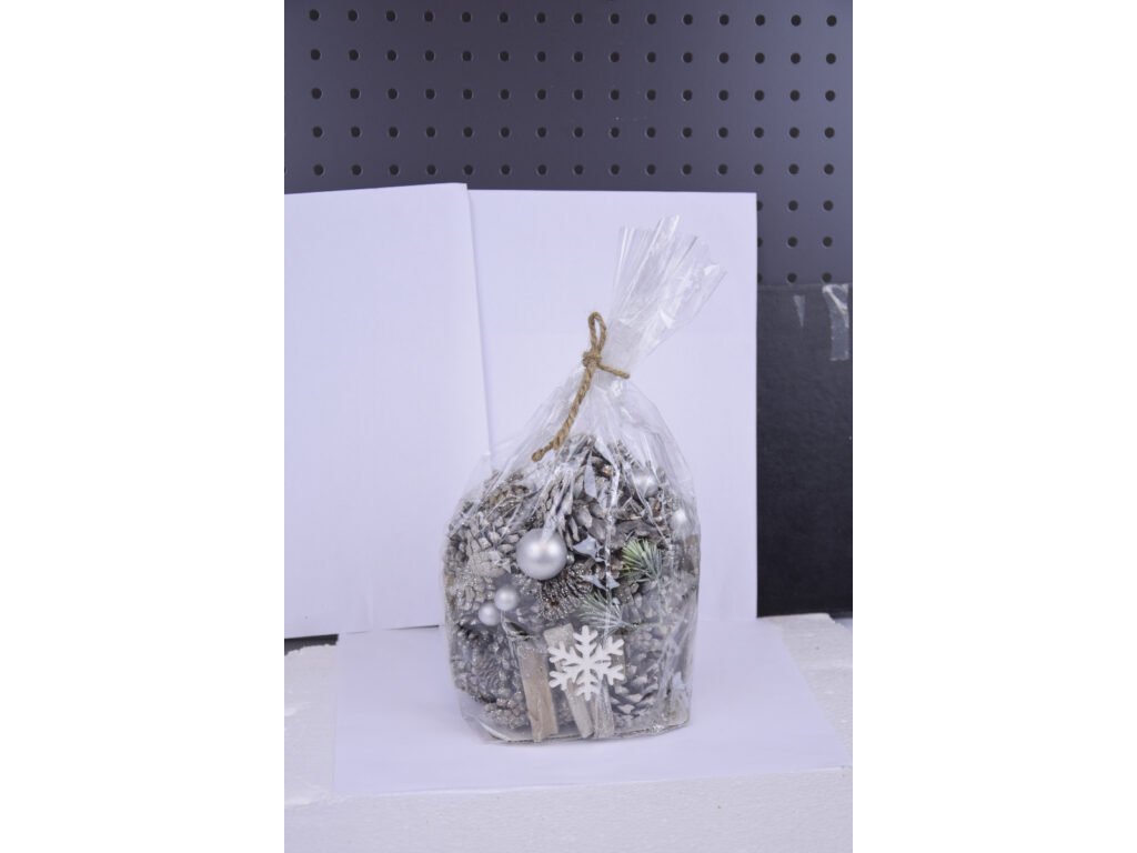 Dekorace, vánoční balení, šišky/dřevo, stříbrná/če|Ego dekor