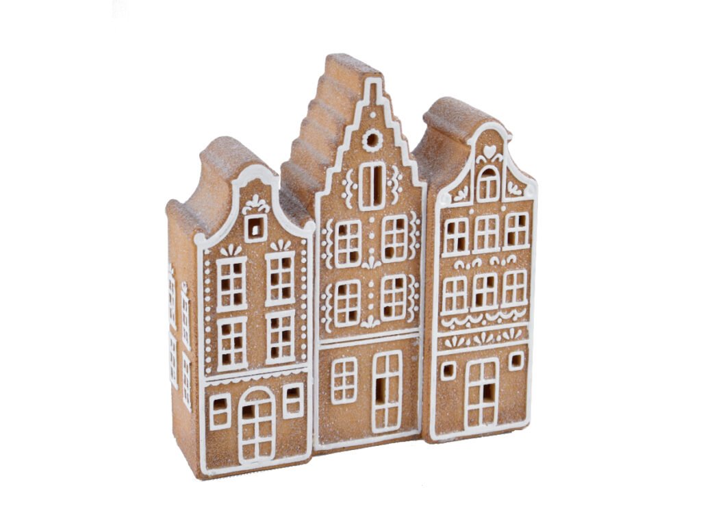 Dekorace 3 domečky LED, baterie, polyresin, 21x21x8,5cm, ks|Ego dekor