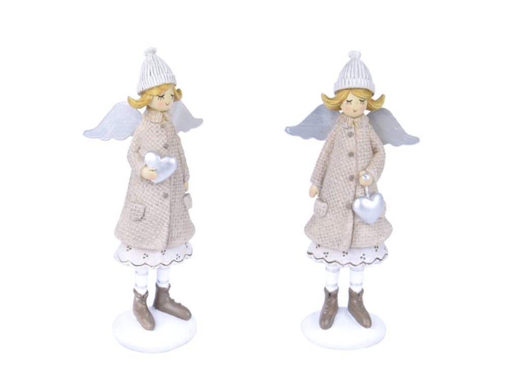 Dekorace andělíček se srdcem, béžová/stříbrná, 8x1|Ego dekor