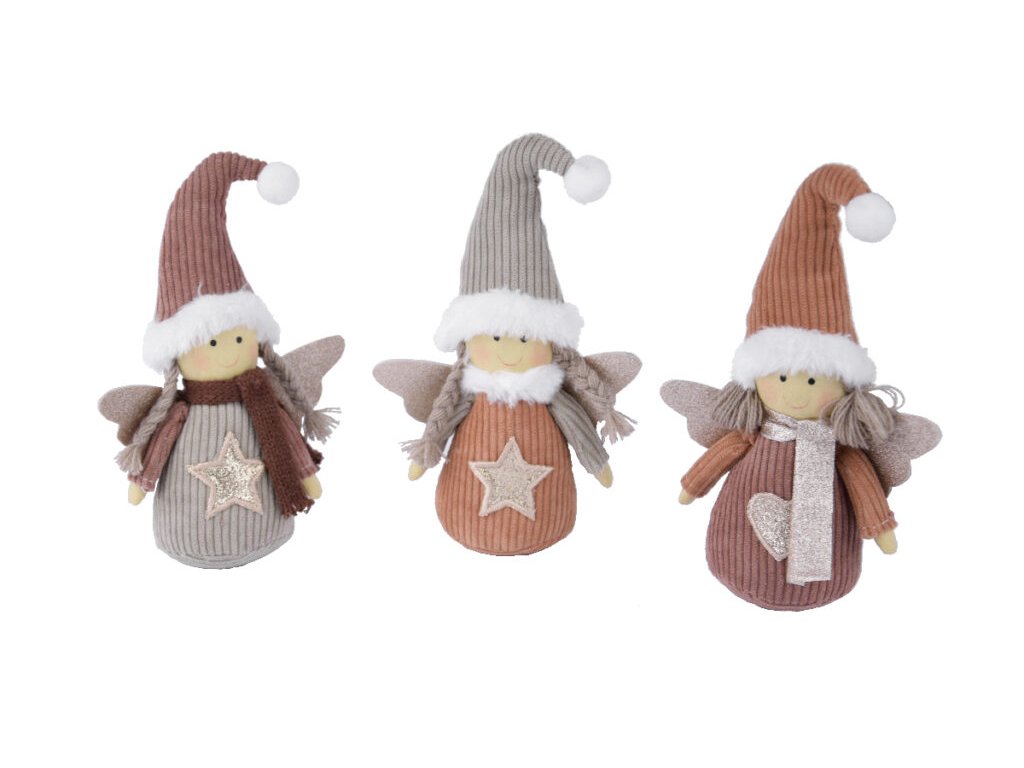 Dekorace andělka s hvězdou, textil, oranžová/khaki/12x19x6cm|Ego dekor