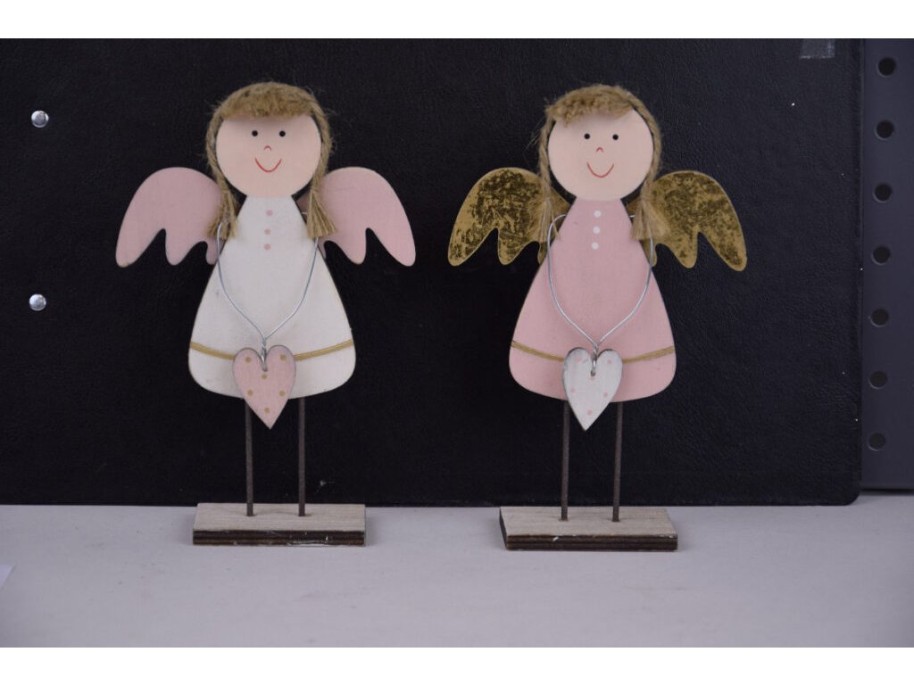 Dekorace andílek na podstavci, dřevěný, 17cm, bílá|Ego dekor