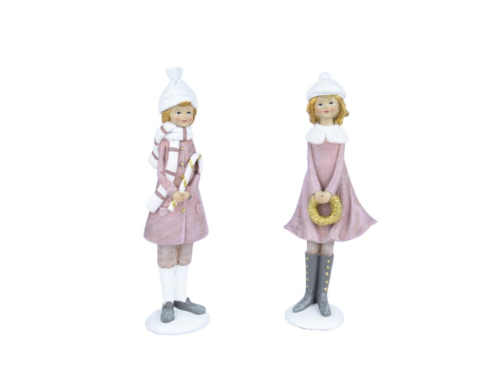 Dekorace dívka v zimním s hůlkou/věncem, růžová/zl|Ego dekor