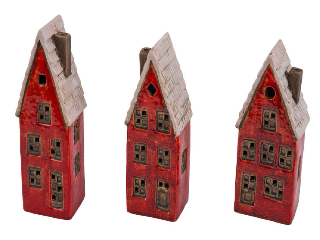 Dekorace domeček, keramika, přírodní/červená, 7,5x5,5x18,5cm