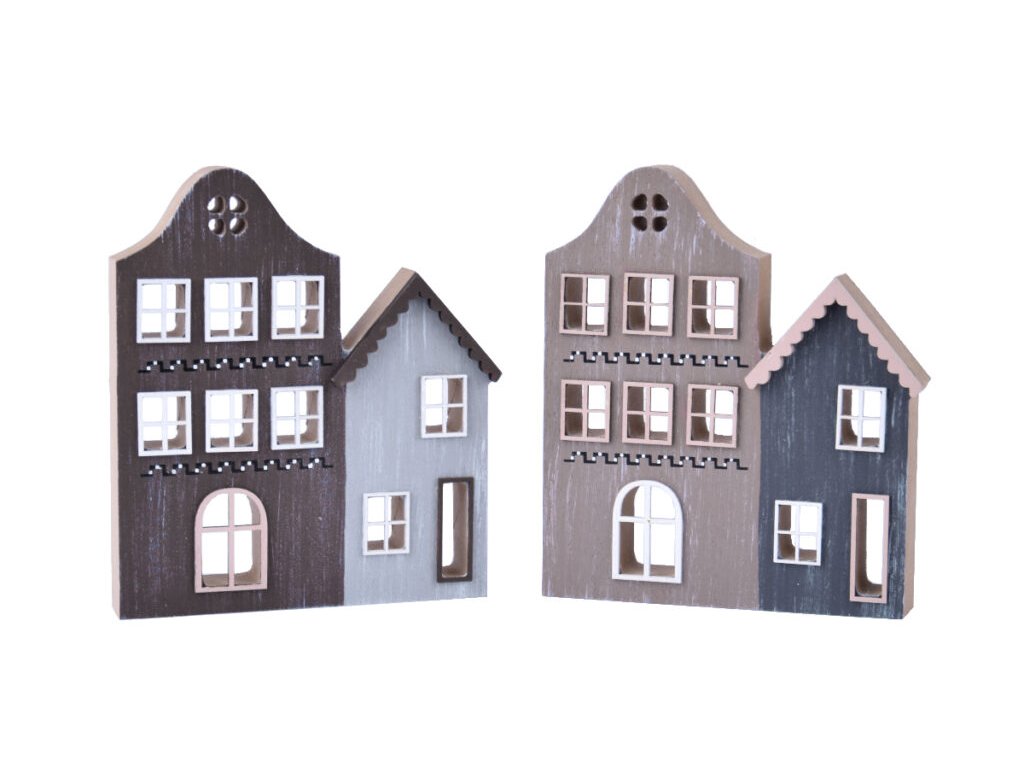 Dekorace domečky, MDF, hnědá/šedá, 13x15x2,5cm|Ego dekor