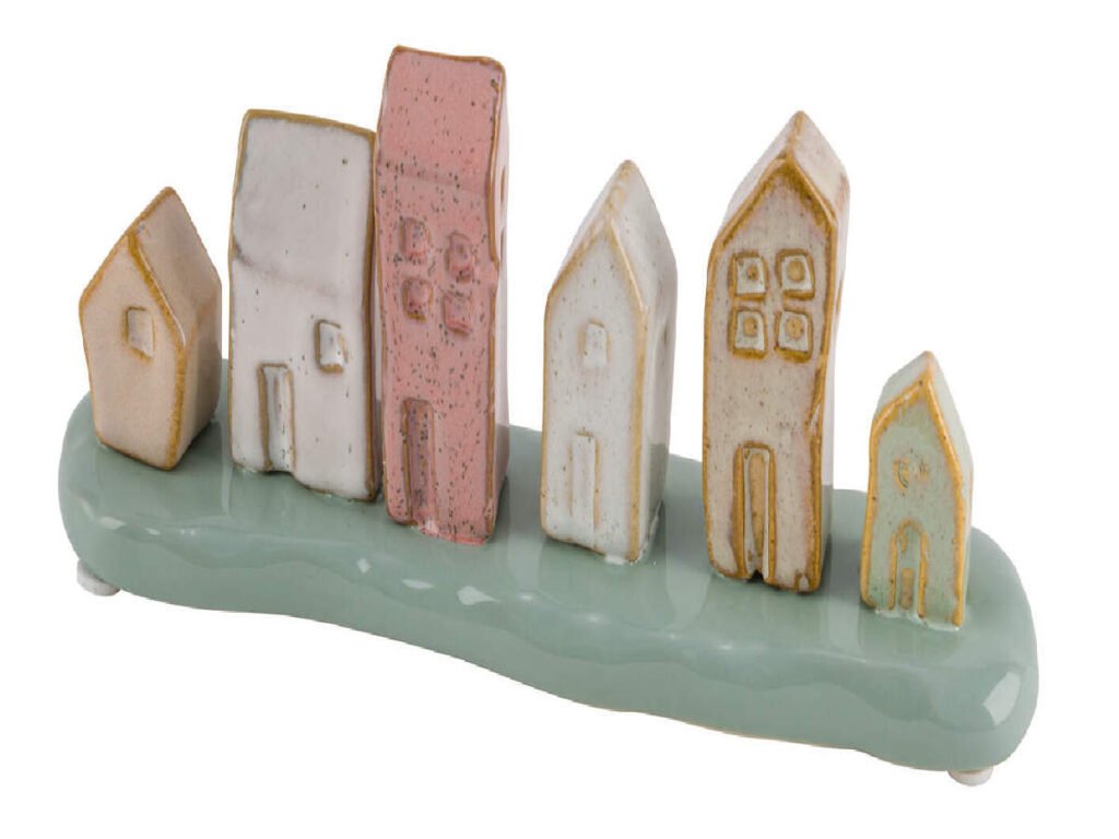 Dekorace domečky HOUSE STREET, keram., přír./zel./růž., 21x5,5x8,5cm, ks