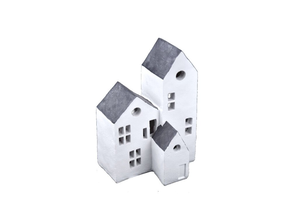 Dekorace domečky VILLAGE LED, polystone, bílá/šedá, 12x19x9,5cm, ks|Ego dekor