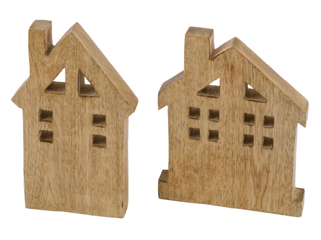 Dekorace DOMEK, mangové dřevo, hnědá|přírodní, 15x2,5x16cm