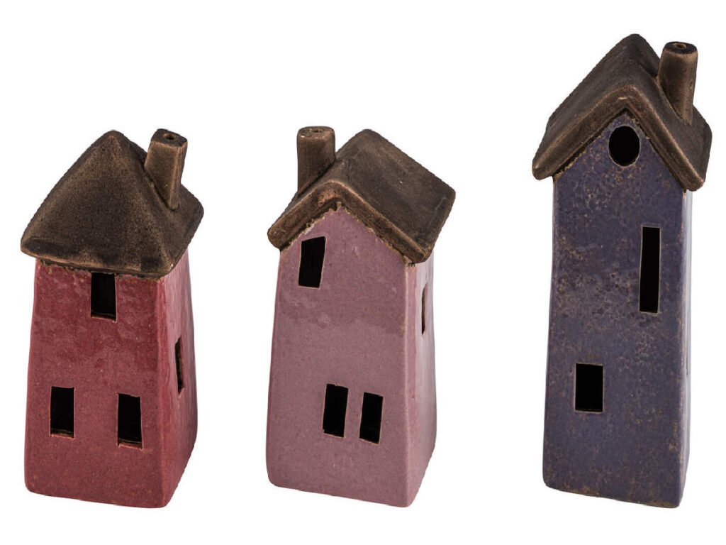 Dekorace domek CAORLE, keramika, růžová/fialová|lila, 7x5,5x10,5cm