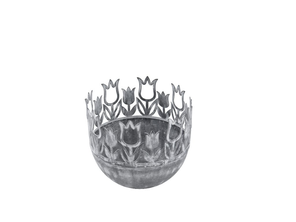 Dekorace kalíšek TULIPÁNY šedá patina 11x11x9,5cm|Ego dekor