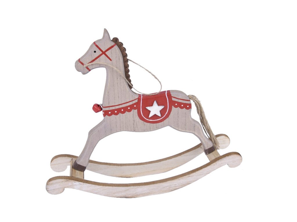 Dekorace koník houpací, bílá/červená, 37x32,5x7,5c|Ego dekor