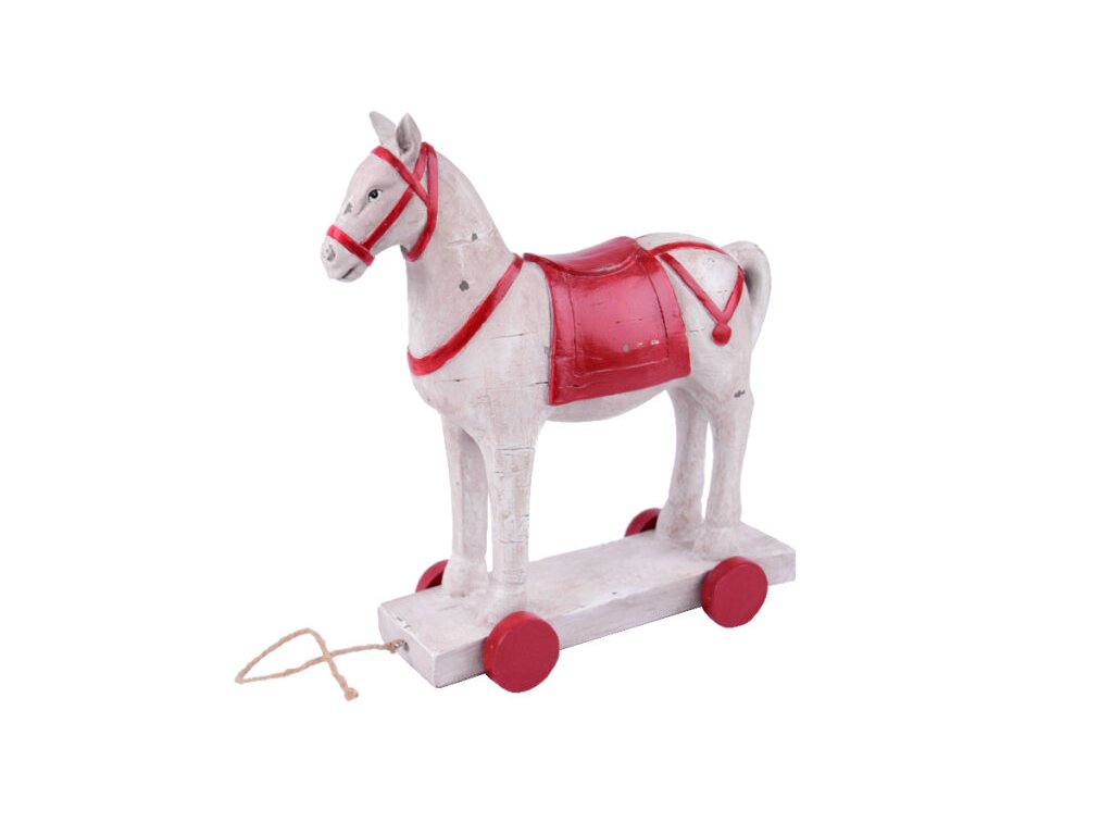 Dekorace koník na kolečkách, polystone, bílá/červená, 21x25x7,5cm, ks|Ego dekor