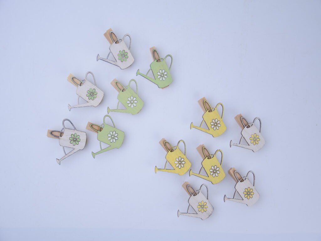 Dekorace konvička, kolíček, dřevo, mix barev, 19x12,5x1,5cm, bal 6ks/2T