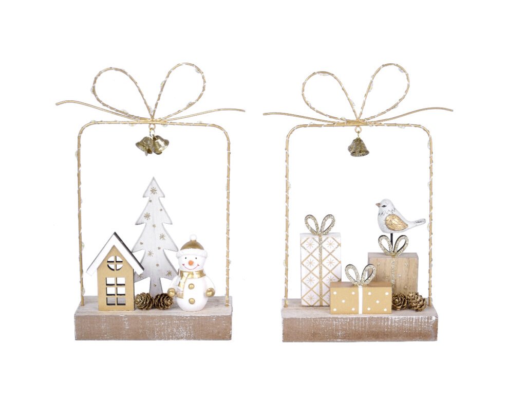 Dekorace LED s mašlí sněhulák/dárky, přírodní, 18x|Ego dekor