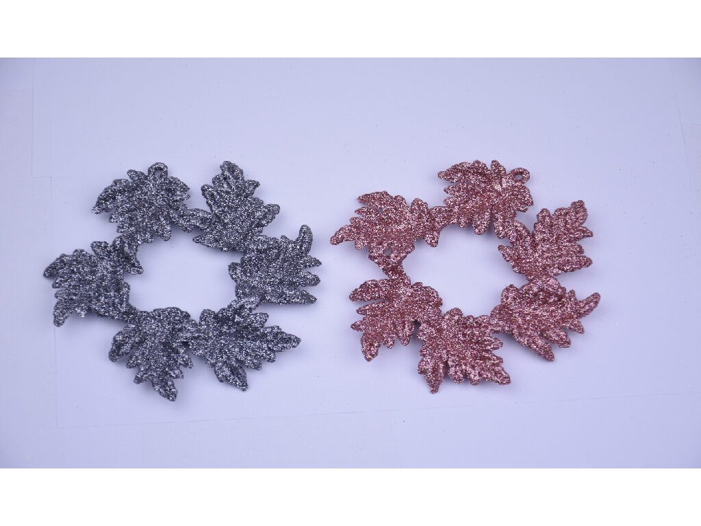 Dekorace list 13cm, šedá/růžová, box 2ks|Ego dekor