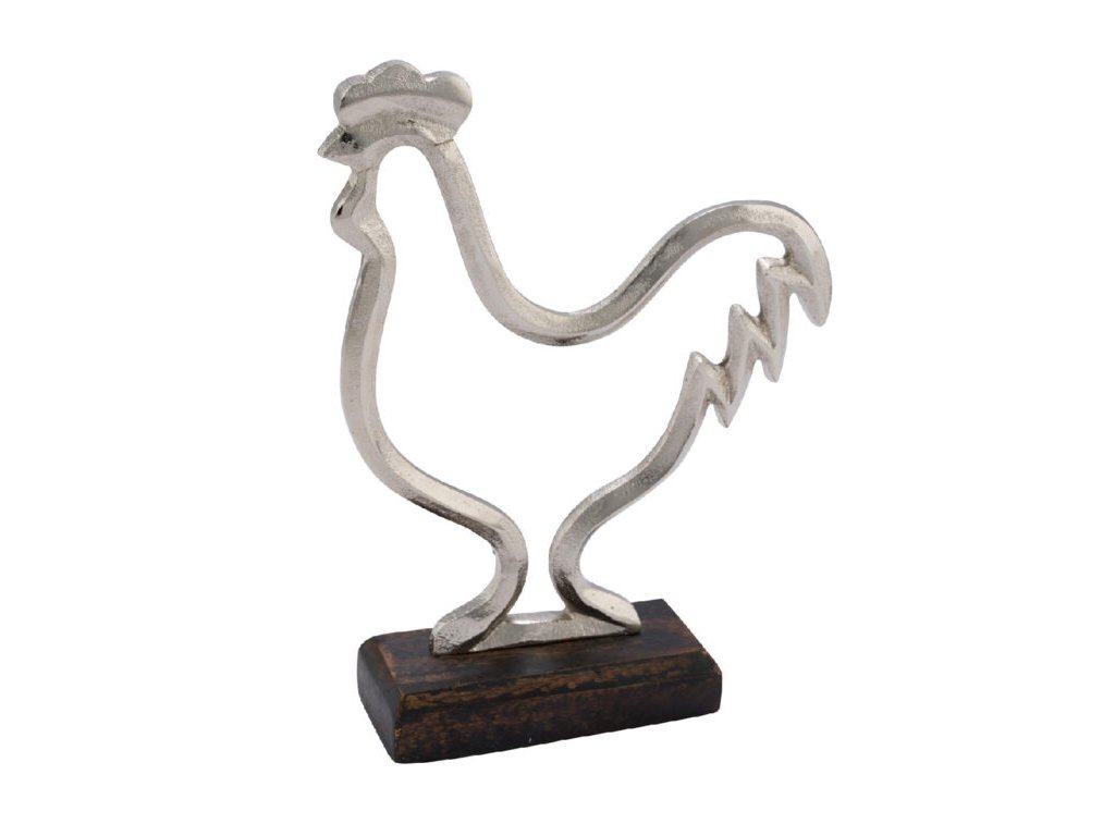 Dekorace na podstavci Kohout, stříbrná, 15x5,4