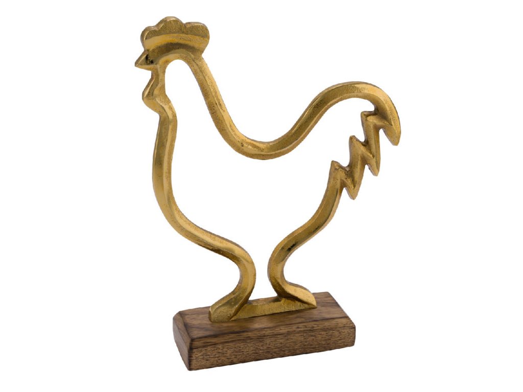 Dekorace na podstavci Kohout, zlatá, 20x5,4x25