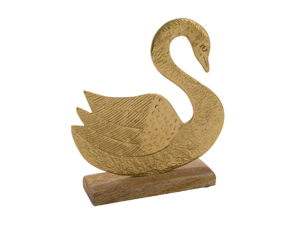 Dekorace na podstavci Labuť, zlatá, 10,9x5,1x1