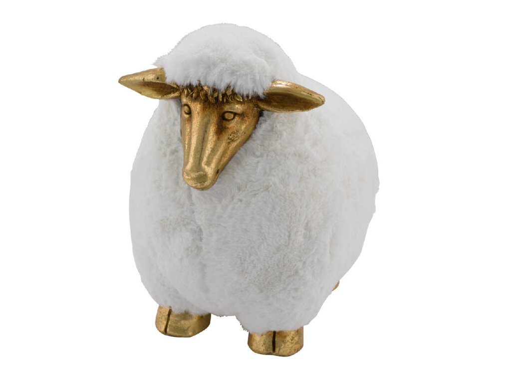 Dekorace Ovečka , zlatá/bílá, 16x20,5x22cm