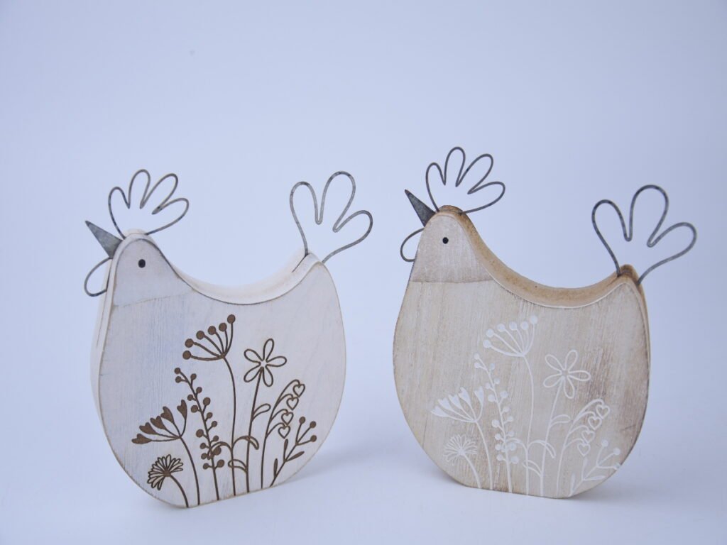 Dekorace slepice, dřevo, bílá, 17x16x2,5cm