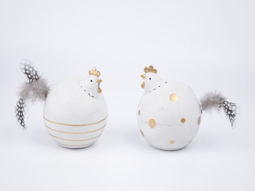 Dekorace slepice, kov, bílá, 8x10x8cm|Ego dekor