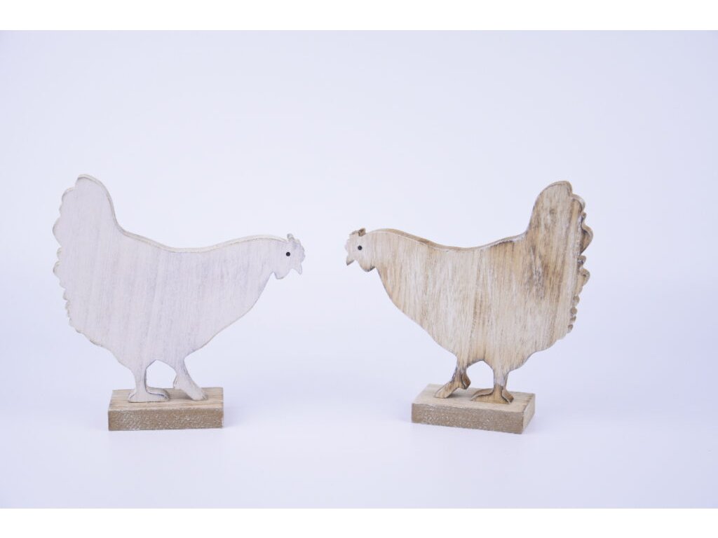 Dekorace slepice na podstavci, MDF, bílá/přírodní, 14x15x4cm|Ego dekor
