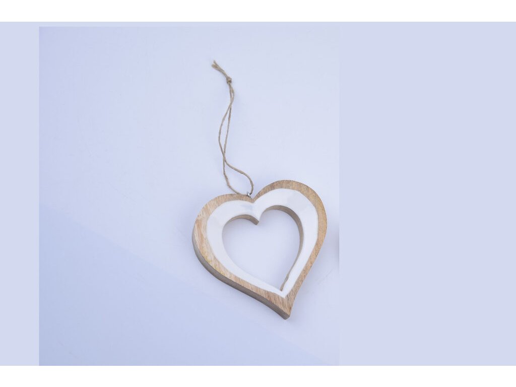 Dekorace srdce, závěs., mangové dřevo+smalt, růžová/bílá, 11x1x11,5cm