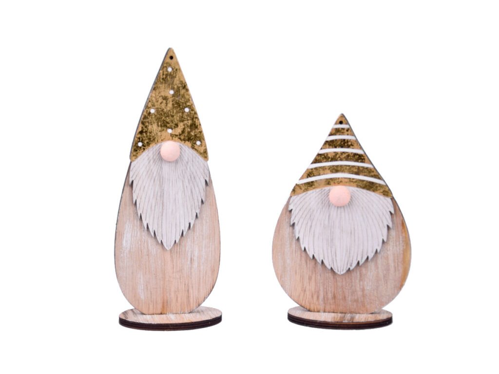 Dekorace trpaslík, stojící, dřevo, béžová/zlatá, 8,5x22x5cm|Ego dekor
