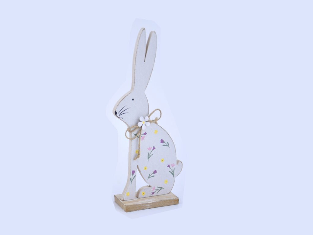 Dekorace zajíc na podstavci, dřevo, bílá, 24x12x4,5cm, ks