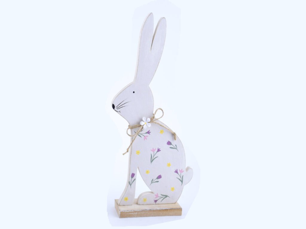 Dekorace zajíc na podstavci, dřevo, bílá, 30,5x16x5cm, ks