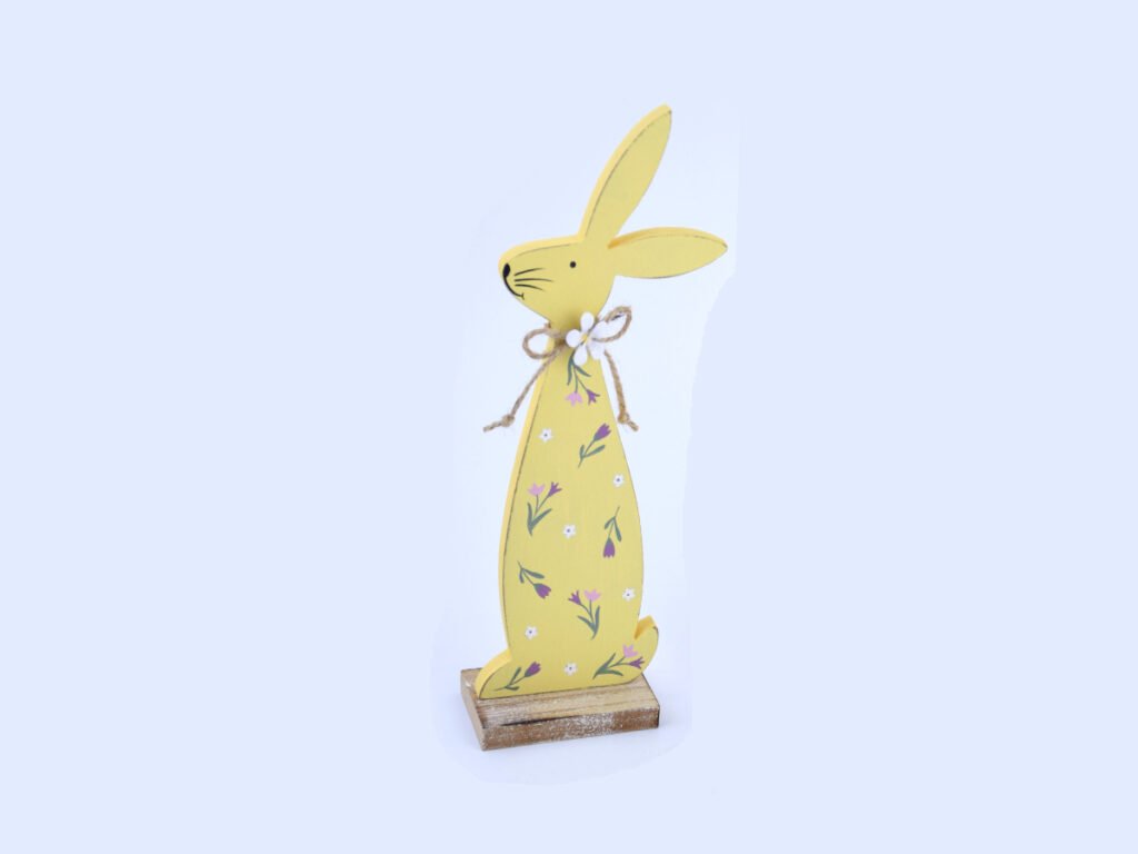 Dekorace zajíc na podstavci, dřevo, žlutá, 23x10x4,5cm, ks