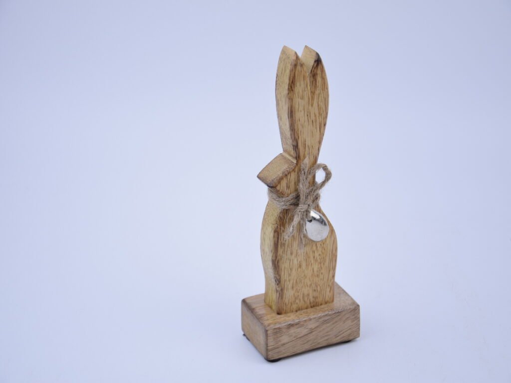 Dekorace zajíc na podstavci, mangové dřevo + kov, natural, 10x5x27,5cm, ks