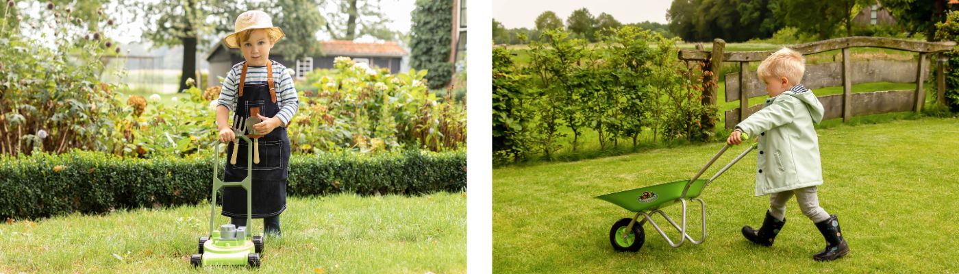 a dokonce i dětské zahradní vozíky, kolečka a košíky, které děti využijí při hře i pomoci rodičům