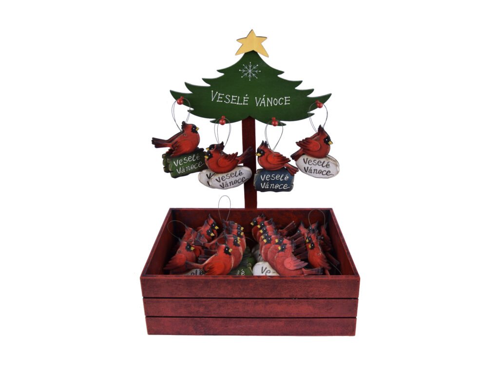 Displej závěs Ptáček VESELÉ VÁNOCE, červená, 32x45|Ego dekor
