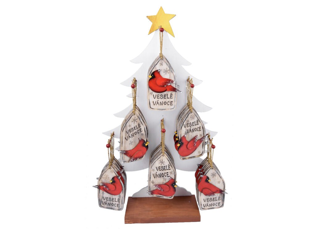 Displej závěs Ptáček VESELÉ VÁNOCE, červená/bílá,|Ego dekor