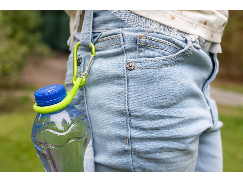 Díky tomu si mohou děti samy připevnit lahev na batoh, opasek nebo tašku, což podporuje jejich samostatnost a organizovanost. Držák je univerzální, snadno použitelný a šetří místo uvnitř batohu – ideální na výlety, tábory, školní vycházky nebo hry venku.