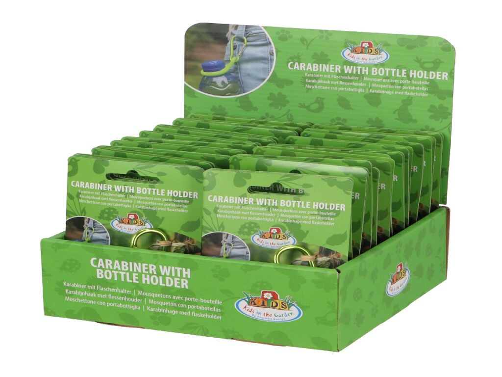 Držák na lahev s karabinou, zelená, 4x3x10,5cm|Esschert design