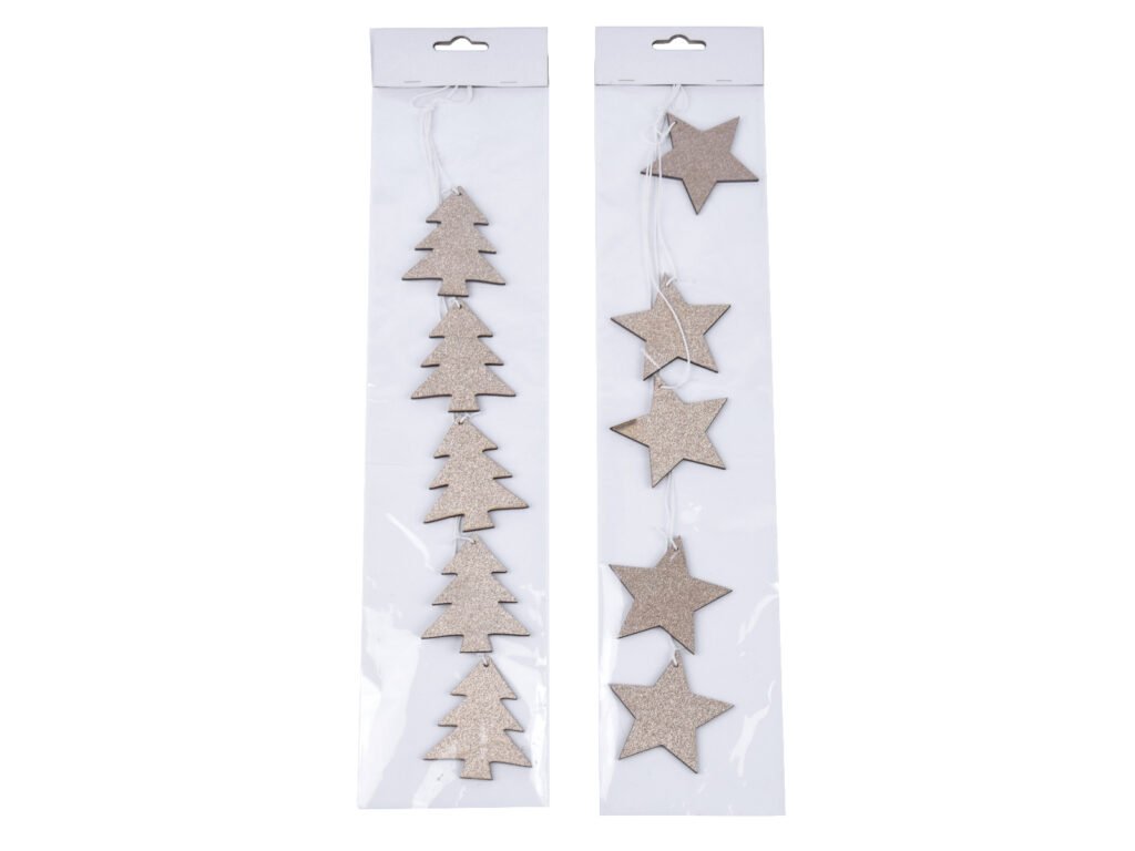 Girlanda hvězda/stromek, dřevo, zlatá, 10x47x0,5cm|Ego dekor