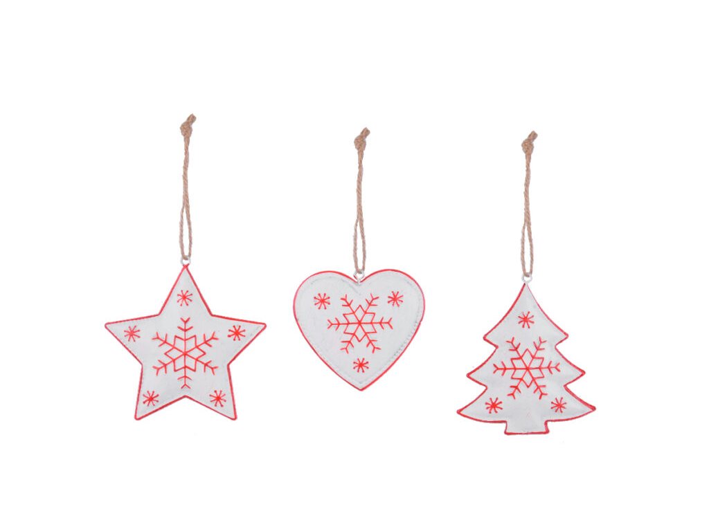 HK A40 VDT Závěs srdce/srdce/hvězda s vločkou, kov, bílá/červ.,9,5x9,5x1,5cm