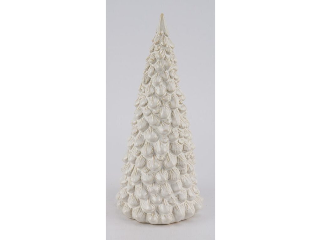 HK VDP Dekorace STROM zasněžený, keramika, béžová|krémová, 11x11x24cm, ks