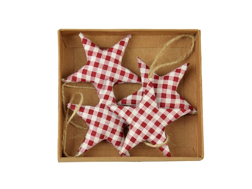 HK VDP Závěs hvězda KOSTIČKY, textil, červeno-bílá, 11x2x12cm, box 4ks