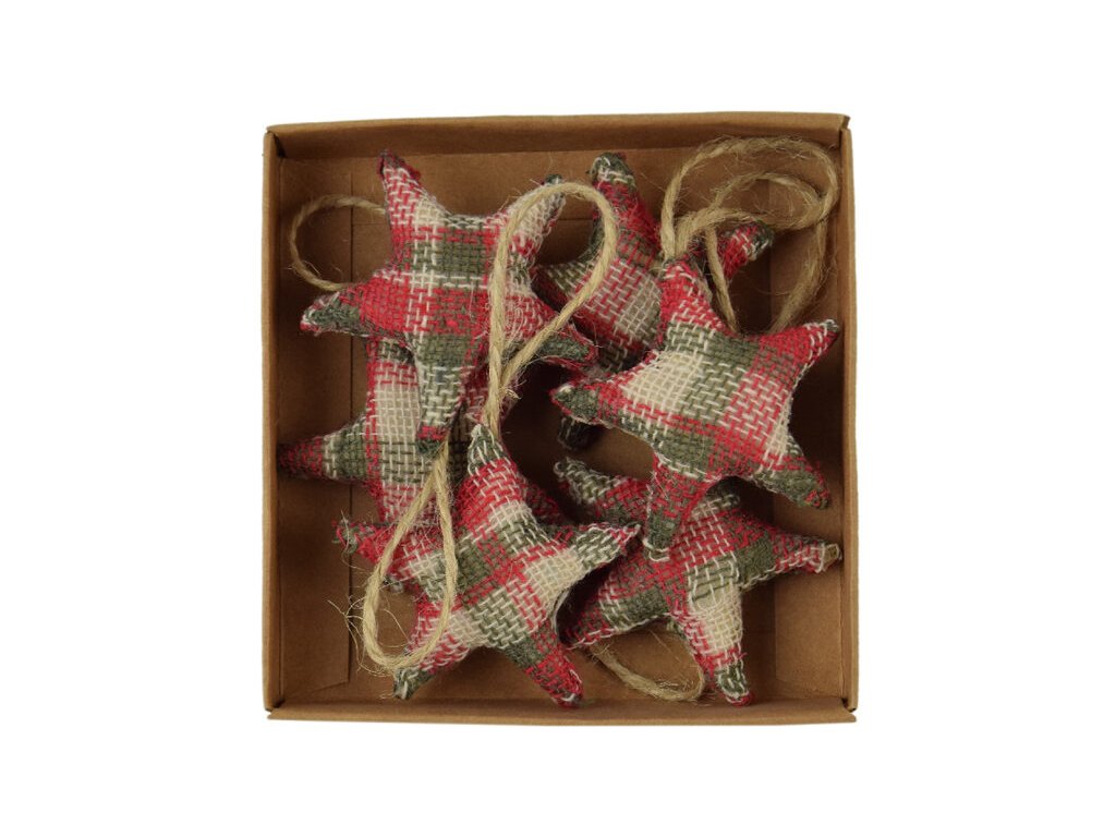 HK VDP Závěs hvězda KOSTIČKY, textil, červeno-zelená, 10x2,5x10cm, box 6ks