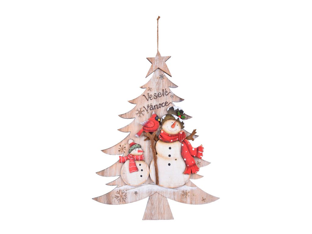 HK VDT Dekorace stromek, sněhulák, LED, dřevo, béž./červ., 26x35x2,5cm, FSC 100%