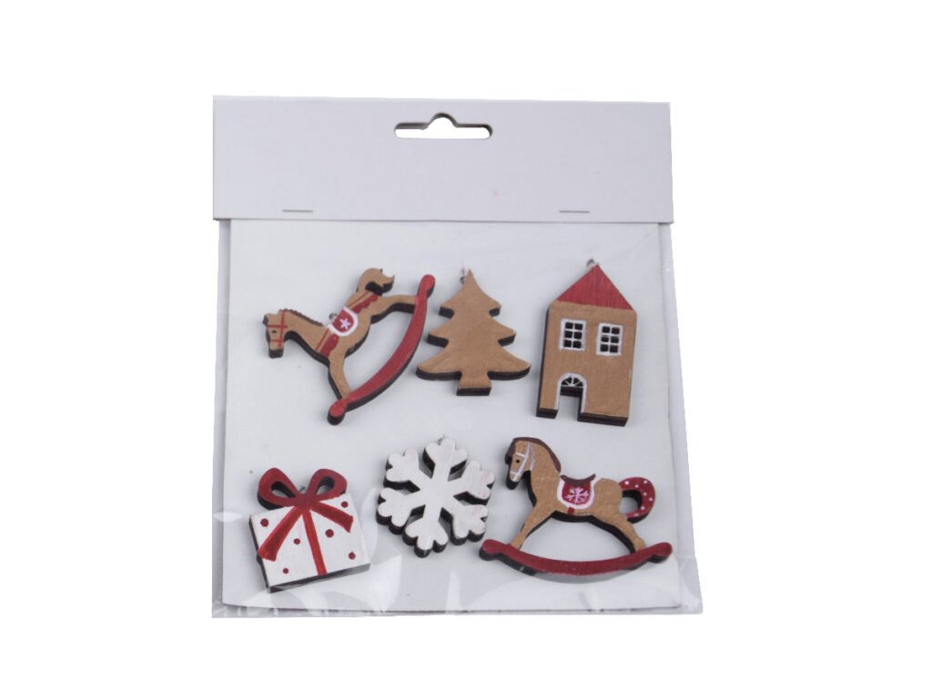 HK VDT Přízdoba vánoční motiv, dřevo, zlatá/červ./bílá, 5x5x0,5cm, FSC 100%