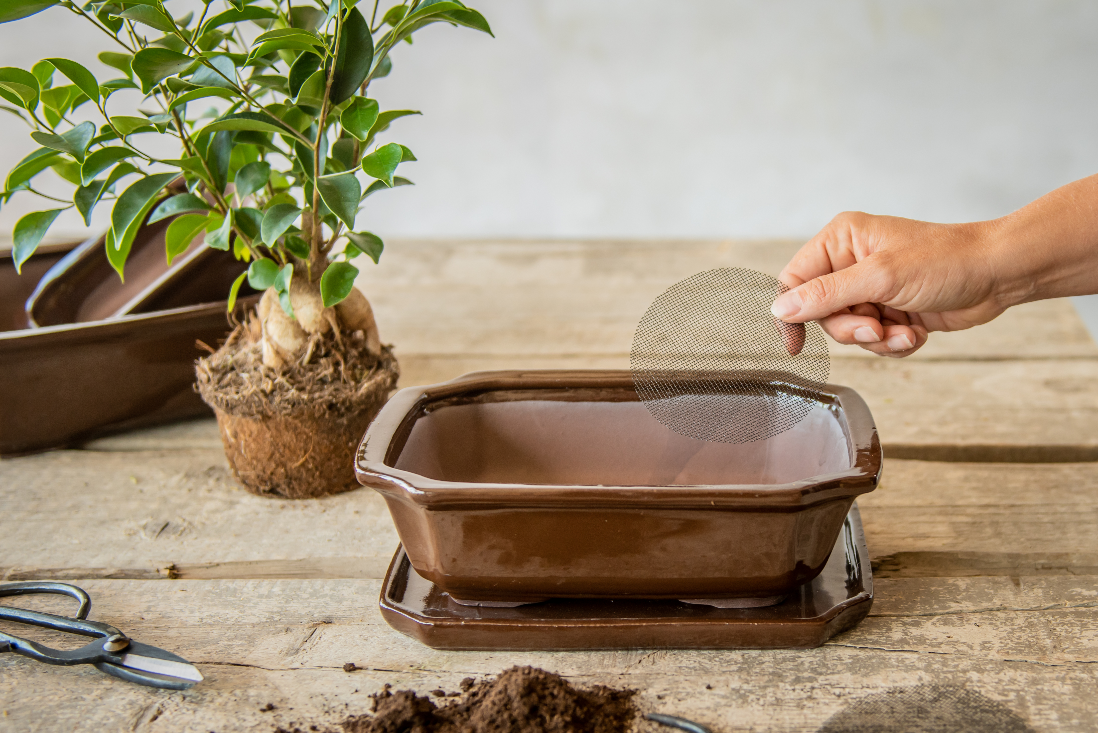 Velikost: Nový květináč by měl být o 2–5 cm širší v průměru než ten stávající.