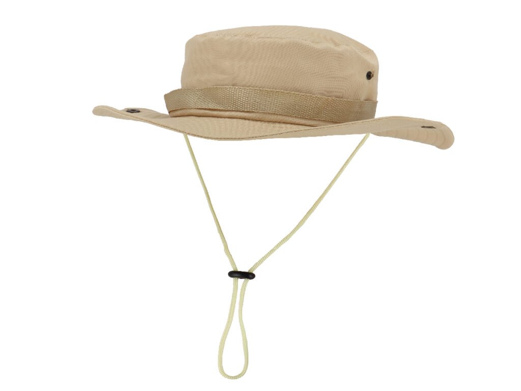 Součástí klobouku je také šňůrka pod bradou, díky které zůstane bezpečně na místě i při pohybu nebo větru. Má univerzální velikost, která dobře sedí většině dětí, a přírodní béžovou barvu, která se hodí k jakémukoli outdoorovému oblečení.